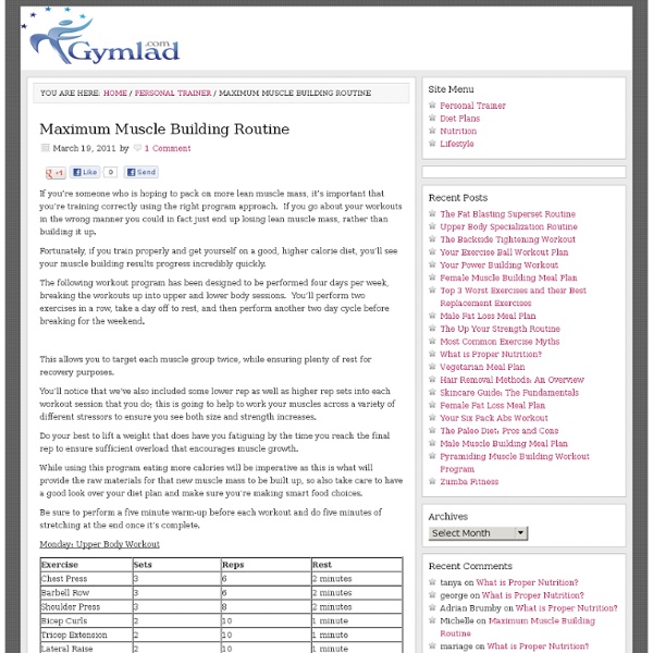 In addition, the vast majority of subjects in the study reported using a split routine as the basis of their usual workout programs, with muscles worked just once per week. In this regard, it’s best to directly work each muscle at least twice a week; any less and ... Read Full Source